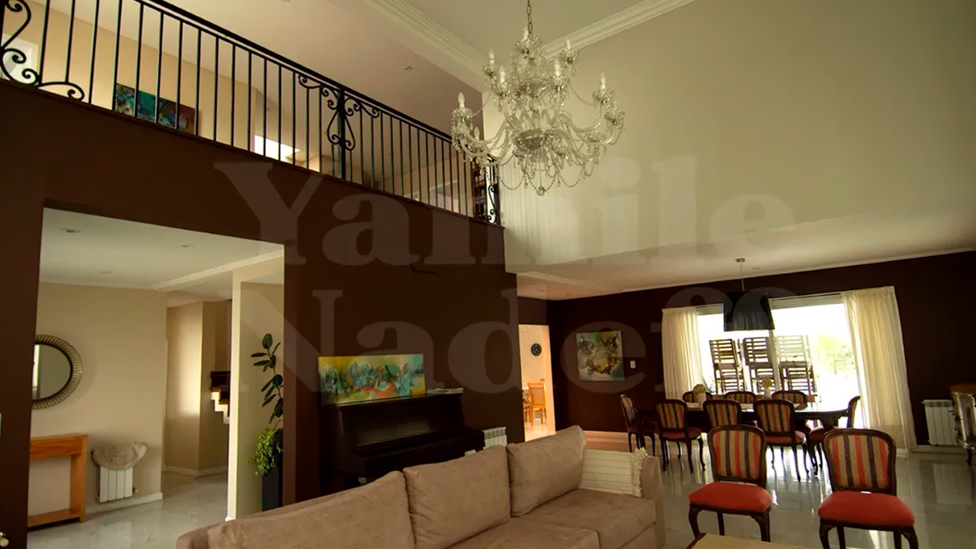 PLANTA BAJA: Se encuentra el acceso principal, living con doble altura y ventanales que acompañan el ambiente. Cuenta con comedor formal, toilette, estudio, cocina comedor integrado, lavadero, galpón, baño externo, galería con parrilla y mesada.